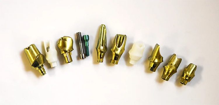 Abutment có thể thiết kế tách rời hoặc liền khối với implant tùy từng dòng sản phẩm. Nó cũng có nhiều biến thể khác nhau về hình dạng, màu sắc, vật liệu (titan, sứ hay kim loại quý)