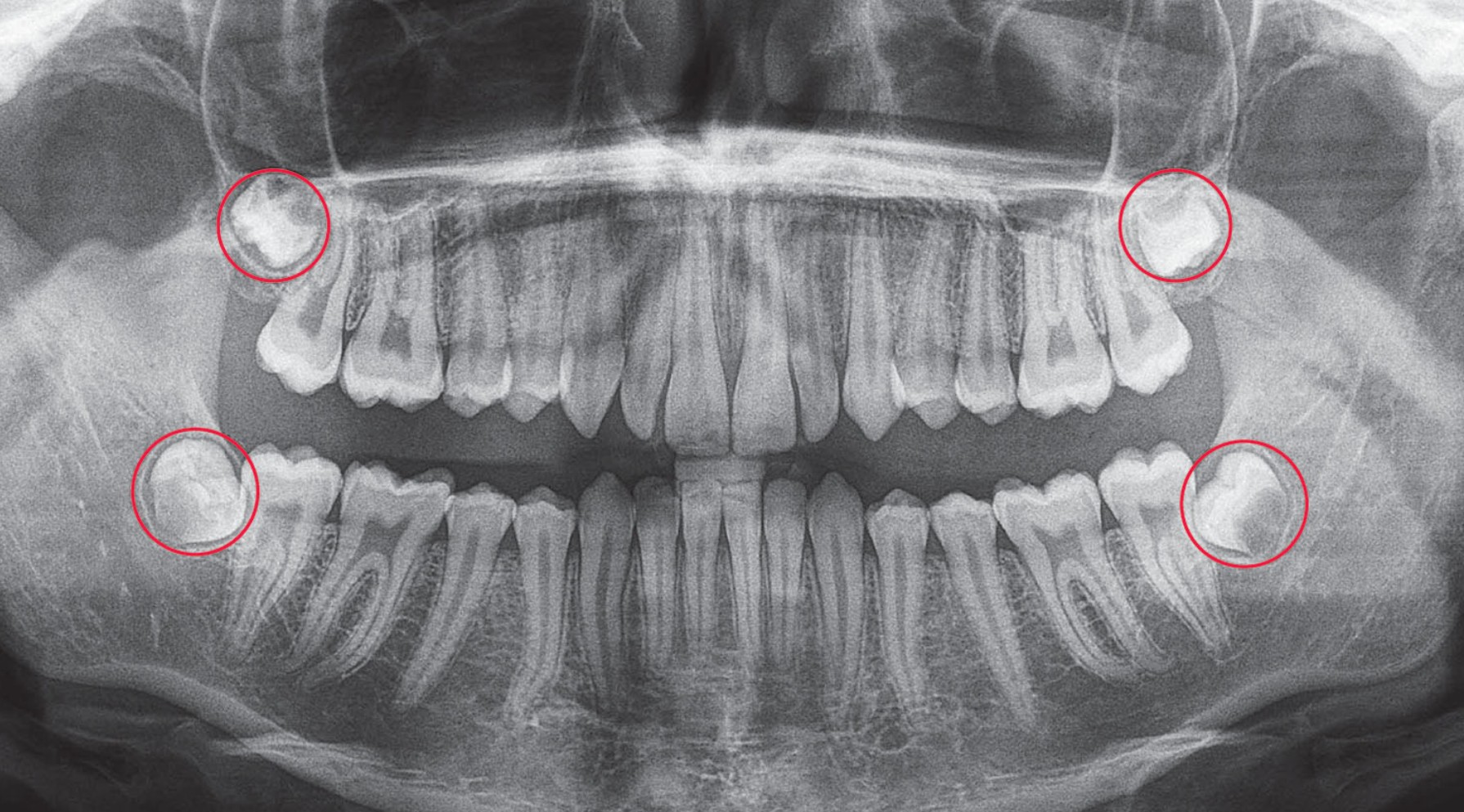 - Kết quả phim X-quang toàn cảnh (Panorex) để xác định hướng mọc và vị trí chân răng.