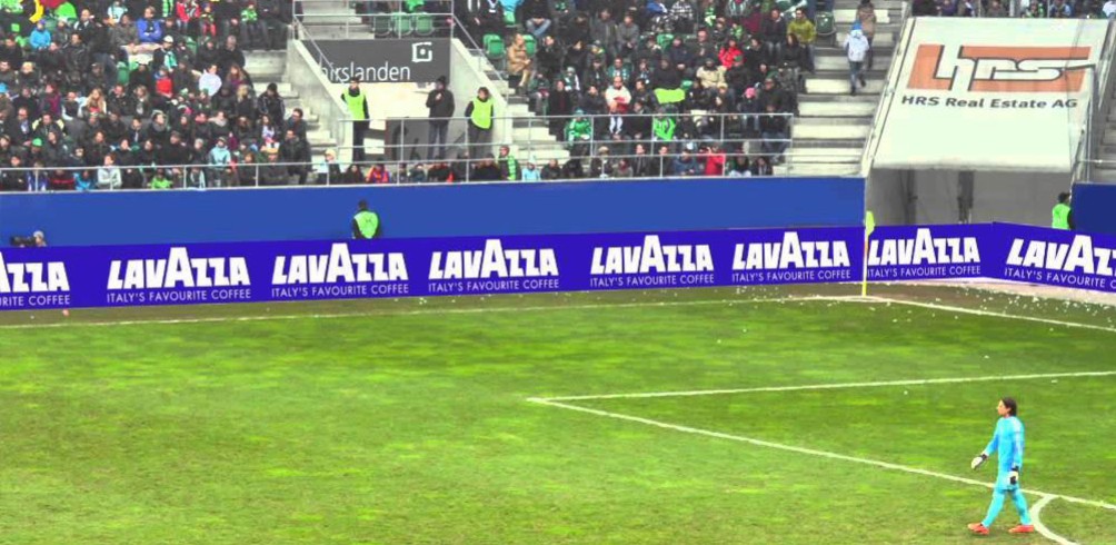Màn LED chạy dài quanh sân đấu, đảm bảo mọi khán giả đều nhìn thấy, dù ngồi 1 góc nào. Khi trận đấu cao trào, ví dụ như có bàn thắng, LED có thể đổi sang clip hoặc slogan của nhà tài trợ, lúc đó sự chú ý của khán giả sẽ lên tối điểm. Sự bắt mắt cao giúc thương hiệu dễ ghi dấu trong lòng người xem.