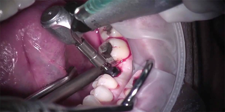 Sau gây tê, bác sĩ sẽ rạch một đường ở rìa ổ răng, sau đó tạo lỗ và đặt trụ implant, thời gian phẫu thuật chung là 20-30 phút.